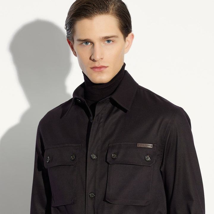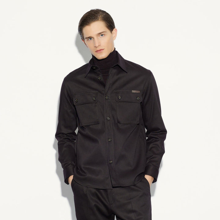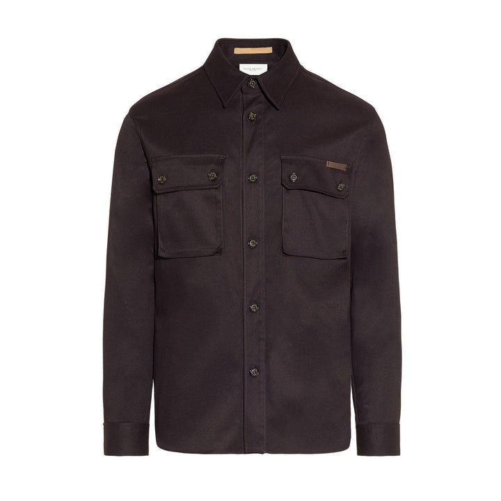 Camicia overshirt in gabardina di lyocell dal design pulito e contemporaneo. Il modello presenta tasche frontali con patta e chiusura con bottoni in madreperla tono su tono, per un’estetica utility sofisticata. Un capo versatile e raffinato, da indossare come camicia o come overshirt nelle mezze stagioni.