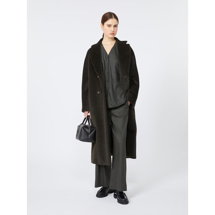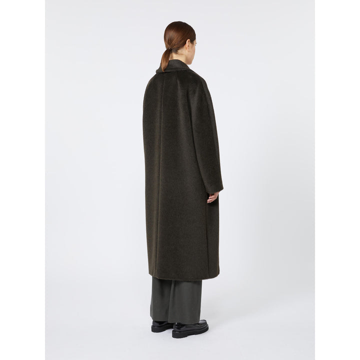 Cappotto Orsetto lungo doppiopetto d'ispirazione sartoriale in lana e alpaca dalla texture morbida e molto soffice. Linea cocoon Collo a rever