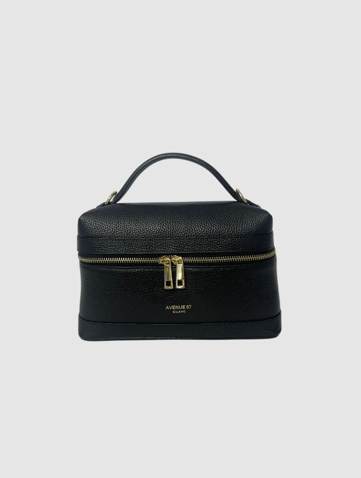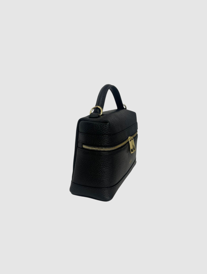 CASE borsa morbida in pelle con manico fisso regolabile, chiusura con cerniera, tasche laterali con chiusura girello, unico vano centrale, tasca interna con zip, doppia tasca portaoggetti.