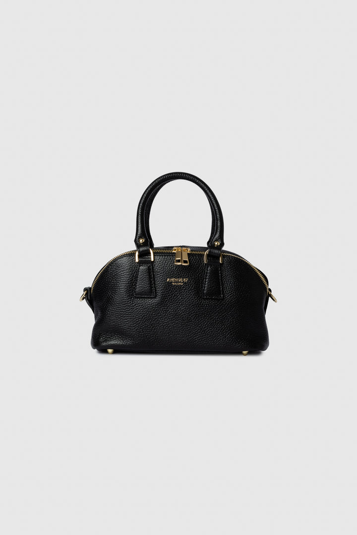 borsa pelle morbida piccola, doppio manico, doppio vano interno, doppia chiusura con zip, tasca interna con zip e doppia tasca portaoggetti, tracolla in pelle rimovibile e allungabile max cm 128.
