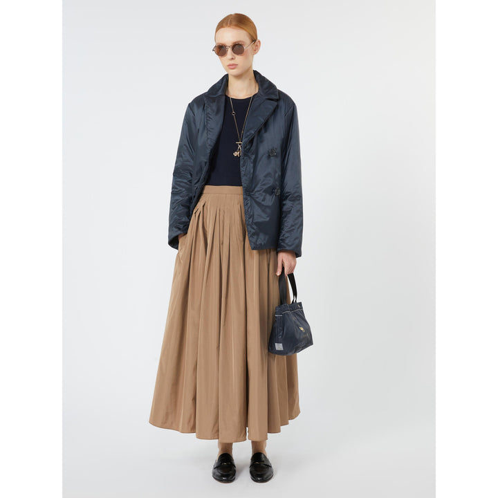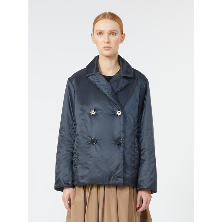 Giacca CAMELIA imbottita modello caban, con collo rever a doppio uso ampio e maniche lunghe. Il modello è caratterizzato dall'imbottitura Cameluxe. Giacca in tela antigoccia. Linea dritta e taglio crop al primo fianco. Chiusura doppiopetto con bottoni. Tasche a filettone verticale sui fianchi. Shopping bag da viaggio con logo "Max Mara The Cube"