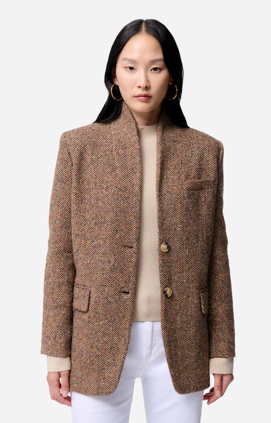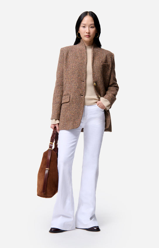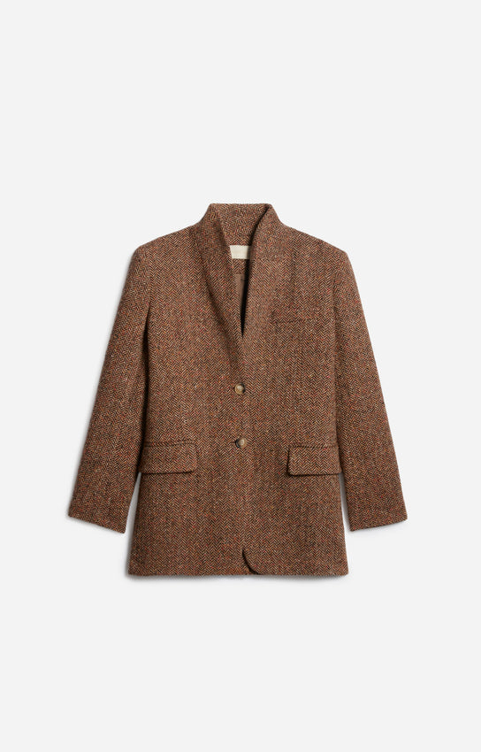 La nostra giacca di lana Jovanka è uno dei nostri più grandi successi. Con il suo colletto avvolgente e le linee dritte e strutturate, questo capo può essere indossato con un jeans o un abito in stile bohémien. Giacca oversize dallo stile maschile.