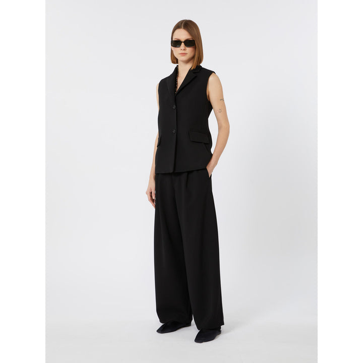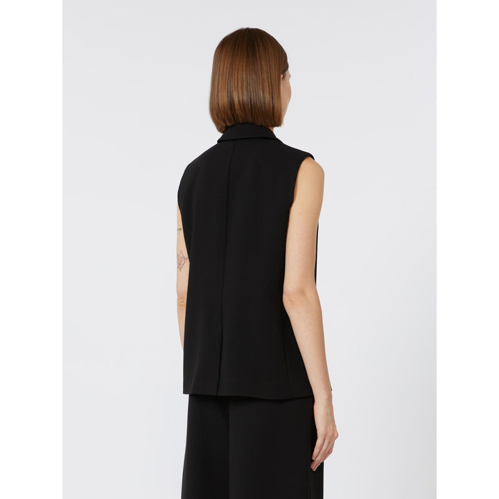 Gilet caratterizzato da una costruzione sartoriale monopetto. Gilet in cady pesante. Linea dritta. Collo a rever. Chiusura con due bottoni in tono. Tasche a filetto con patta applicata sul davanti. Piccolo spacco centrale sul retro