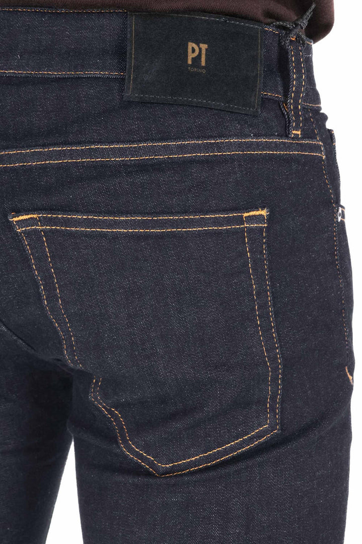 Jeans in denim stretch indigo dalla tela morbida, confortevole e resistente (10 once), con lavaggio scuro ed evidenti schiariture. Con cinque tasche, vita bassa e linea slim