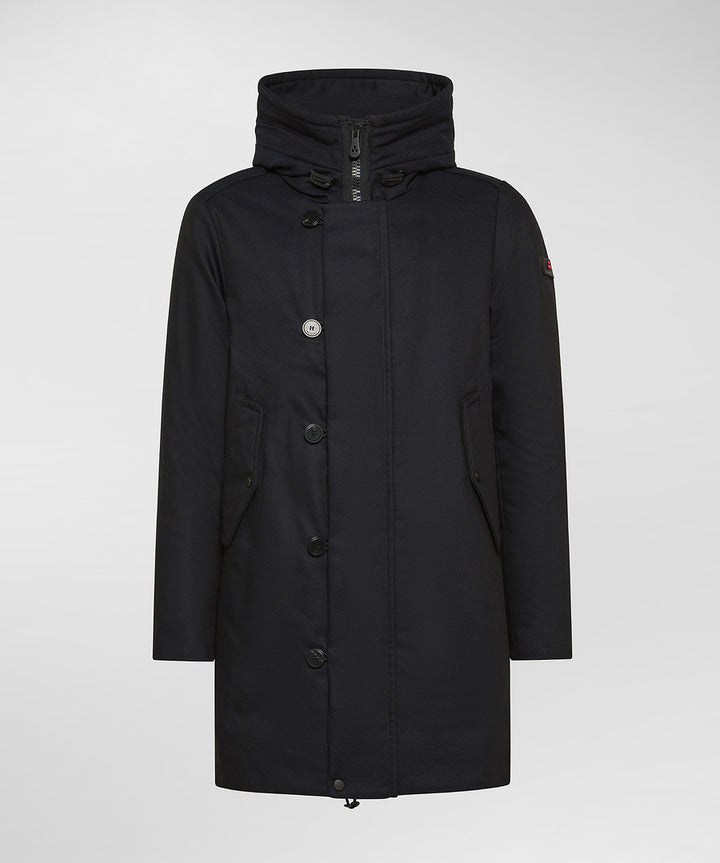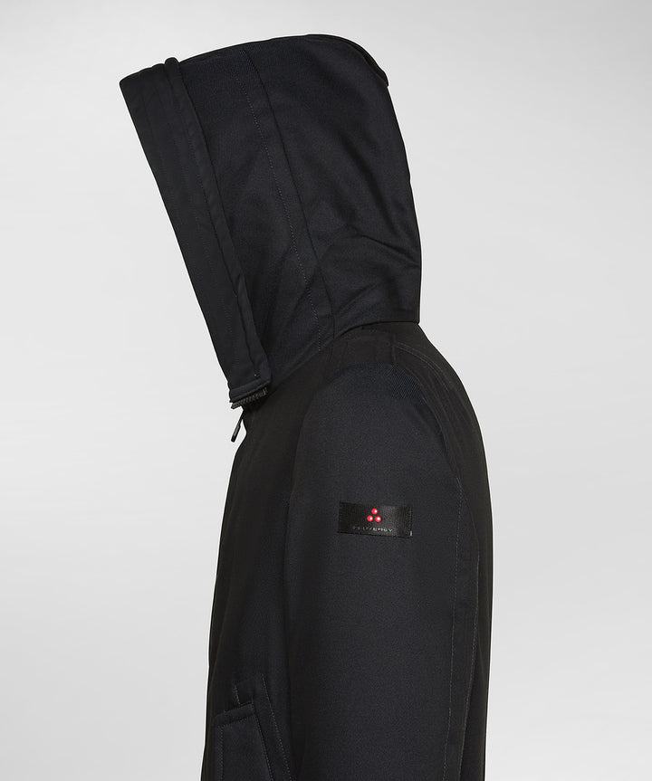 KASA KI03 Parka ad alta tenacità in tessuto realizzato mediante due filati di poliestere tinto filo che lo rendono morbido, pulito, resistente e brillante con trattamento idrorepellente PFC free e con imbottitura in piuma naturale 80% Piumino 20% Piuma - Fill Power 650.