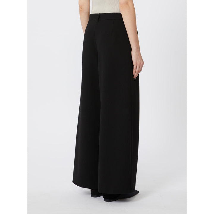 Pantalone con doppia pince sul davanti e volume ampio sulla gamba. Pantalone in cady. Chiusura con listino alto in vita, zip con patta e gancetto. Tasche alla francese sui fianchi. Pinces cucite in vita sul retro. Passanti per cintura