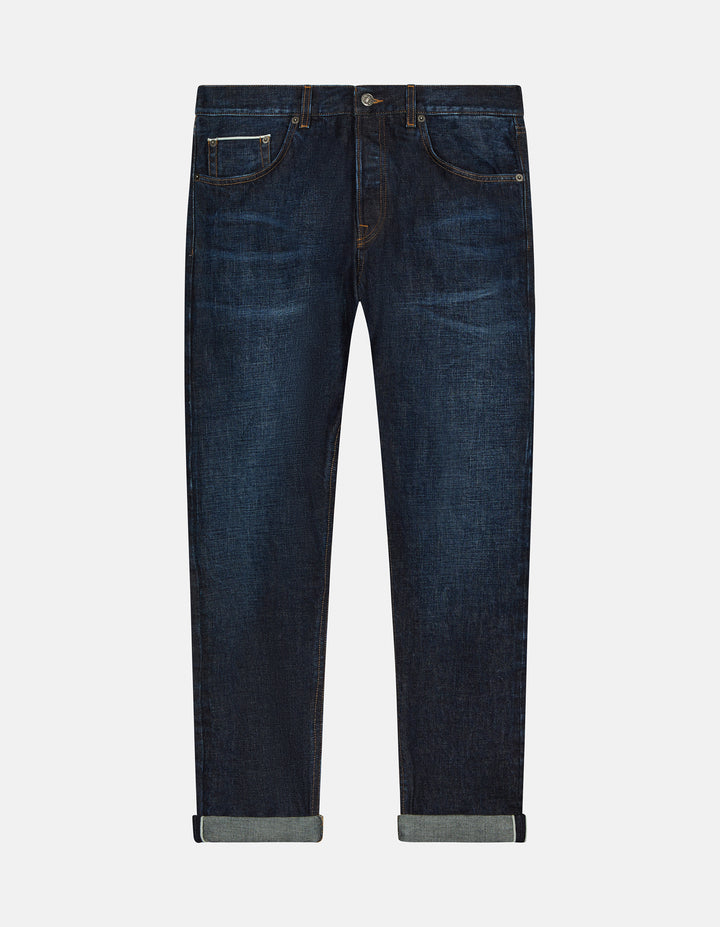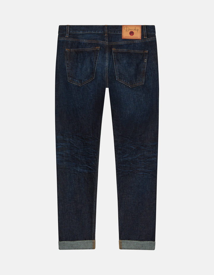 JEANS "ICON" 5TASCHE REGULAR FIT, VITA REGOLARE. DENIM CIMOSATO 14,2 OZ FISSO BLU. LOGO DONDUP. MADE IN ITALY