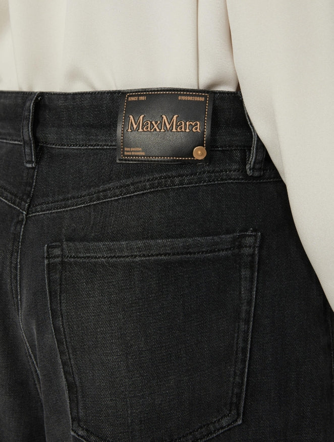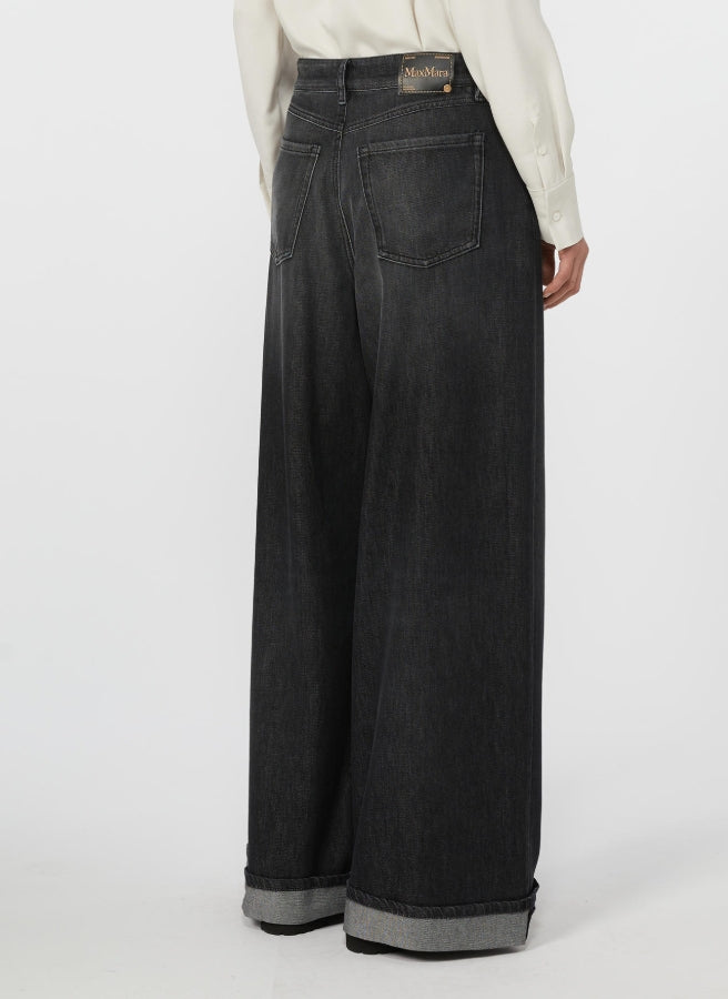 Jeans in denim zolfo cotone viscosa trattato in capo con classica costruzione 5 tasche e risvolto al fondo Gamba dritta con piega stirata sul davanti