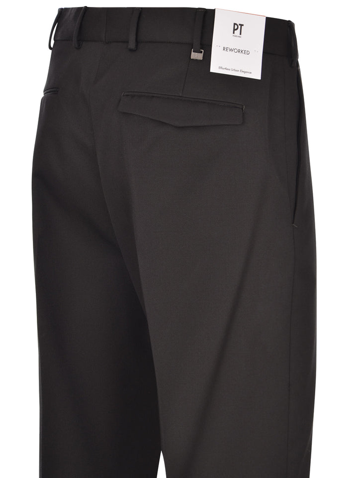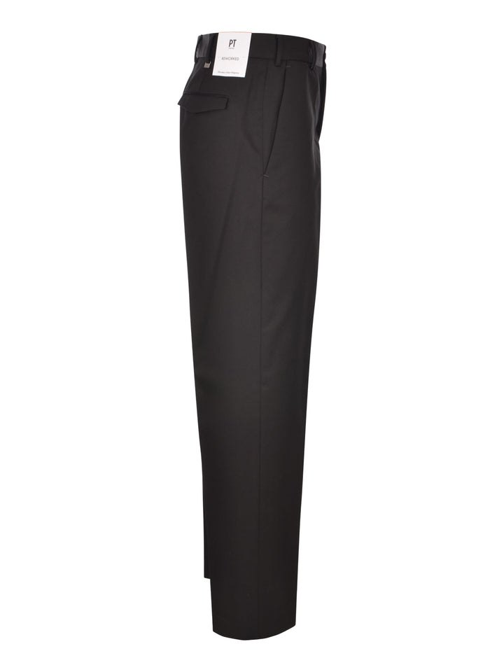 Pantalone MICHAEL con vestibilità wide leg in drill di pura lana con filato doppio ritorto che rende il tessuto molto resistente a strappi e sfregamenti, con aspetto attuale e consistente