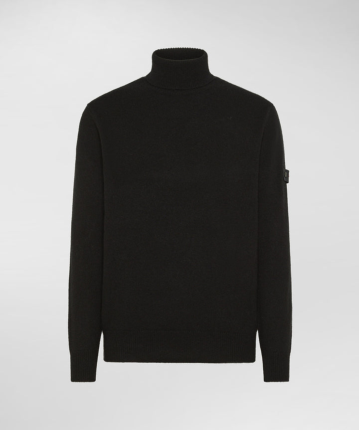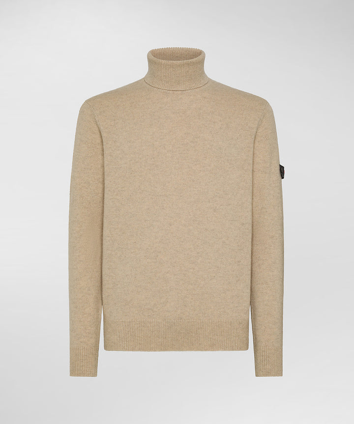 PELINE 02 Maglia a collo alto in tricot di pregiato misto lana yak che regala una piacevole texture morbida, calda e soffice, simile al cachemire. La superficie soffice è valorizzata dai dettagli a coste su collo, polsini e fondo.