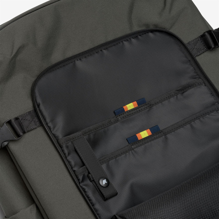 Lato sx interno: 1 scomparto con cerniera + 1 tasca con cerniera in fodera