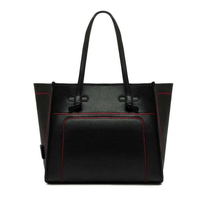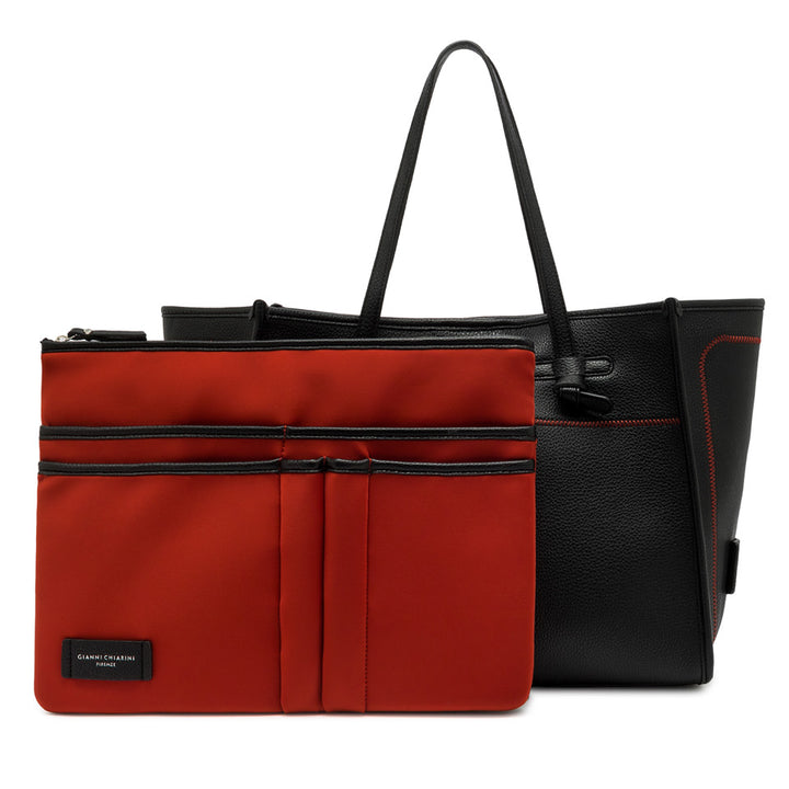 La shopping Marcella è realizzata in tessuto effetto pelle, morbido e leggero. Dotata di manici in pelle e di una pratica chiusura magnetica, è l’accessorio ideale per la vita quotidiana. I profili in pelle conferiscono un tocco di eleganza al design. La fodera interna e il porta laptop in neoprene la rendono versatile, perfetta per completare anche i look più semplici. Dimensioni: 38x31x16 cm.