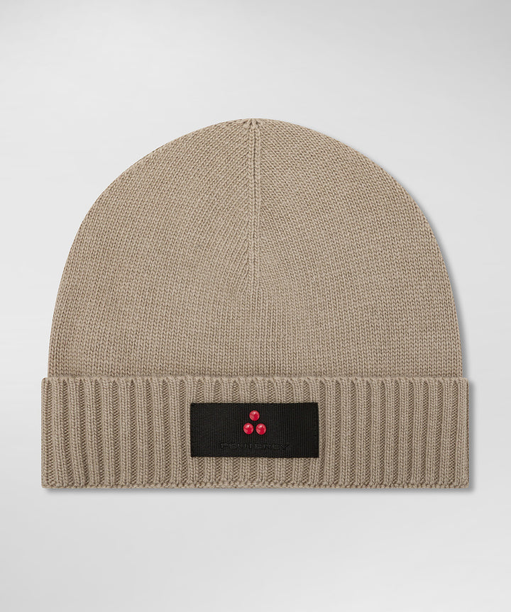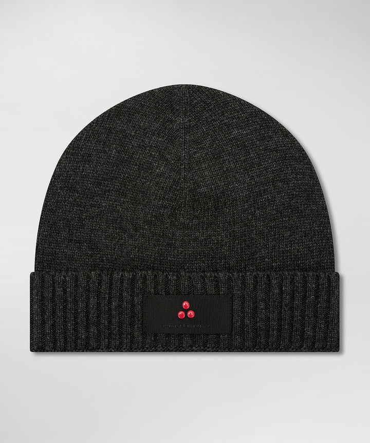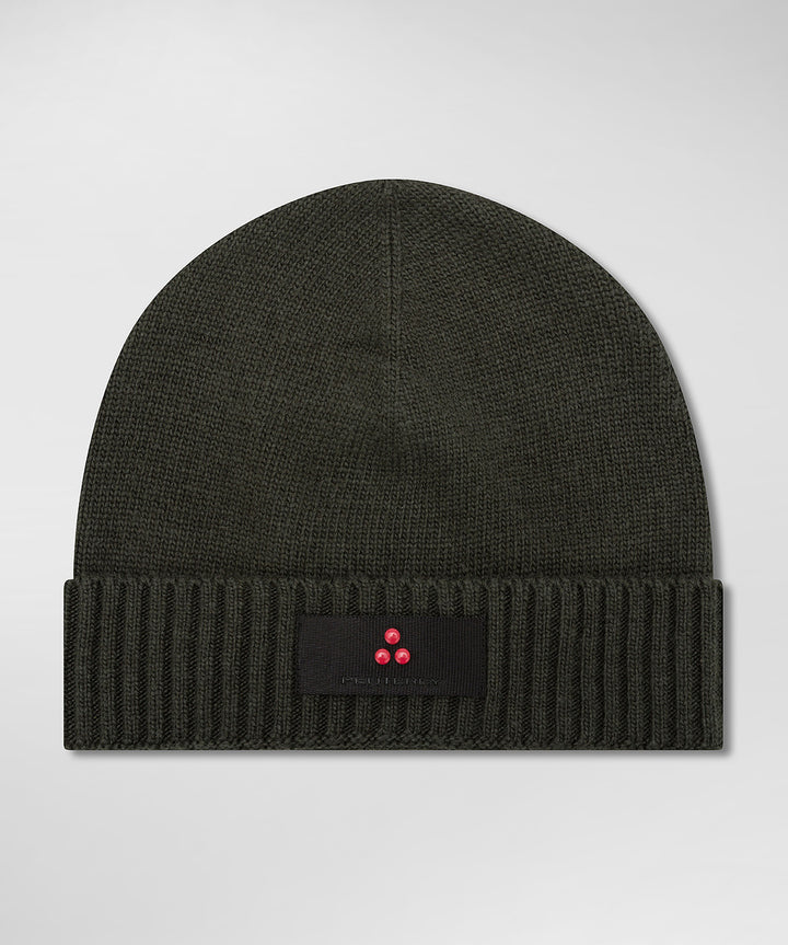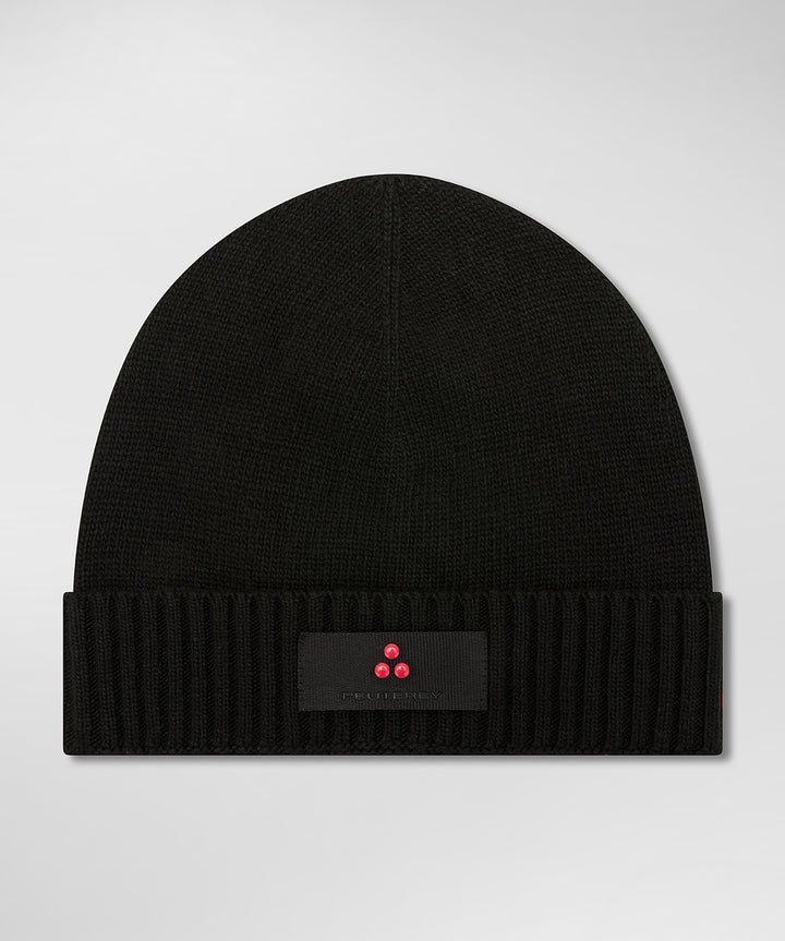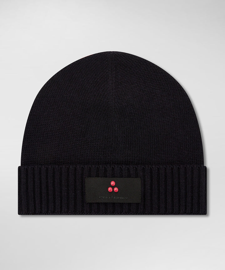 SILLI 05 Caldo berretto in misto lana e cachemire, morbido e avvolgente, con risvolto a coste e l’iconico logo Peuterey trilogy sul davanti.