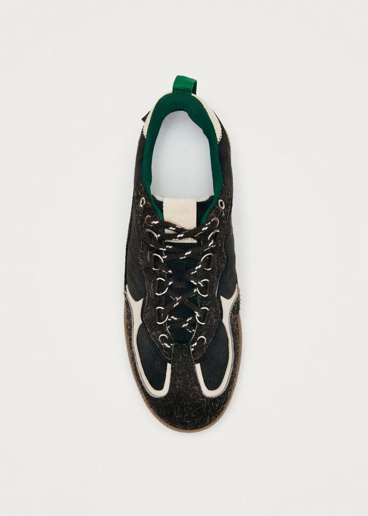 Sneaker in camoscio marrone con dettagli a contrasto.