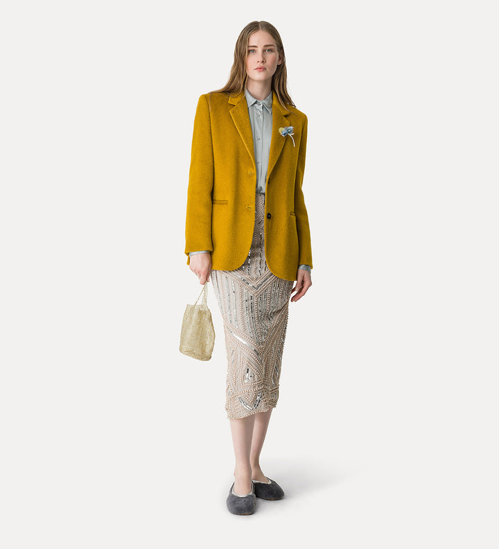 Spilla a fiore realizzata a mano, composta da delicati petali in tessuto leggero e colorato. il cuore vellutato e i sottili pistilli aggiungono profondità e poesia a una composizione che sembra colta in un gesto fugace. un accessorio romantico da appuntare sul cuore.
