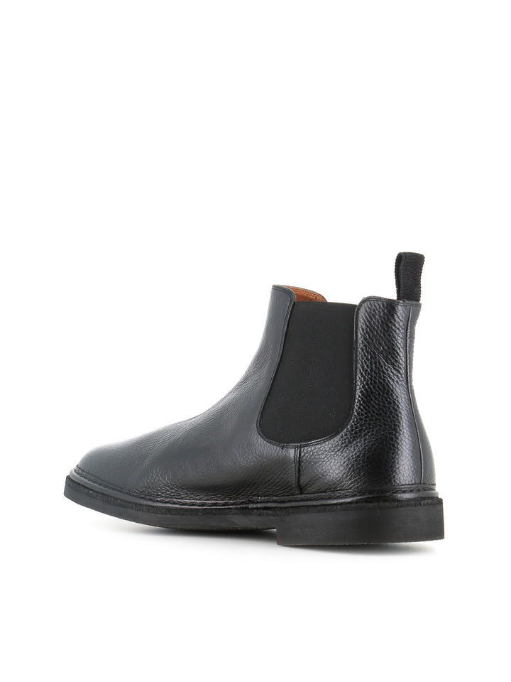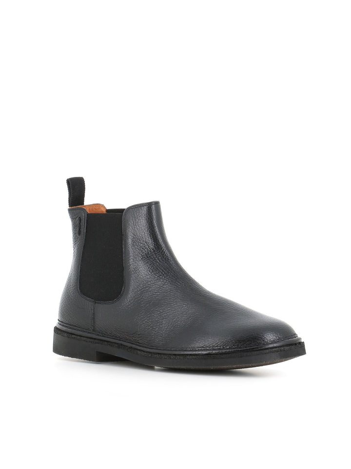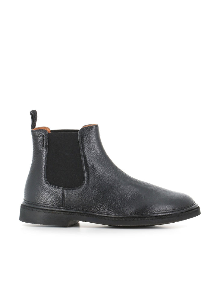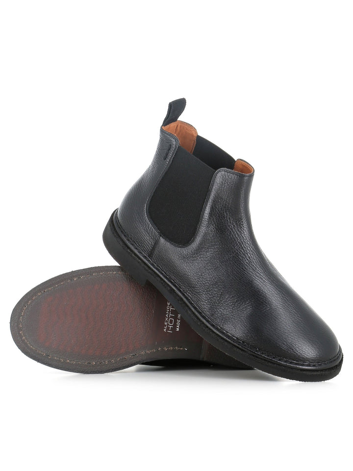 Chelsea uomo Alexander Hotto color nero, realizzato in morbida pelle martellata, caratterizzato da una punta tonda e da cuciture a vista. Interno foderato. Lavorazione artigianale. Fondo flessibile in para e gomma. Tacco: 3,5 cm