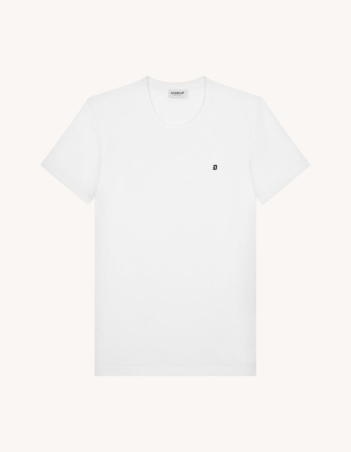 T-shirt girocollo regular a maniche corte con logo applicato sul petto. Jersey di cotone
